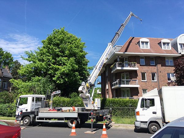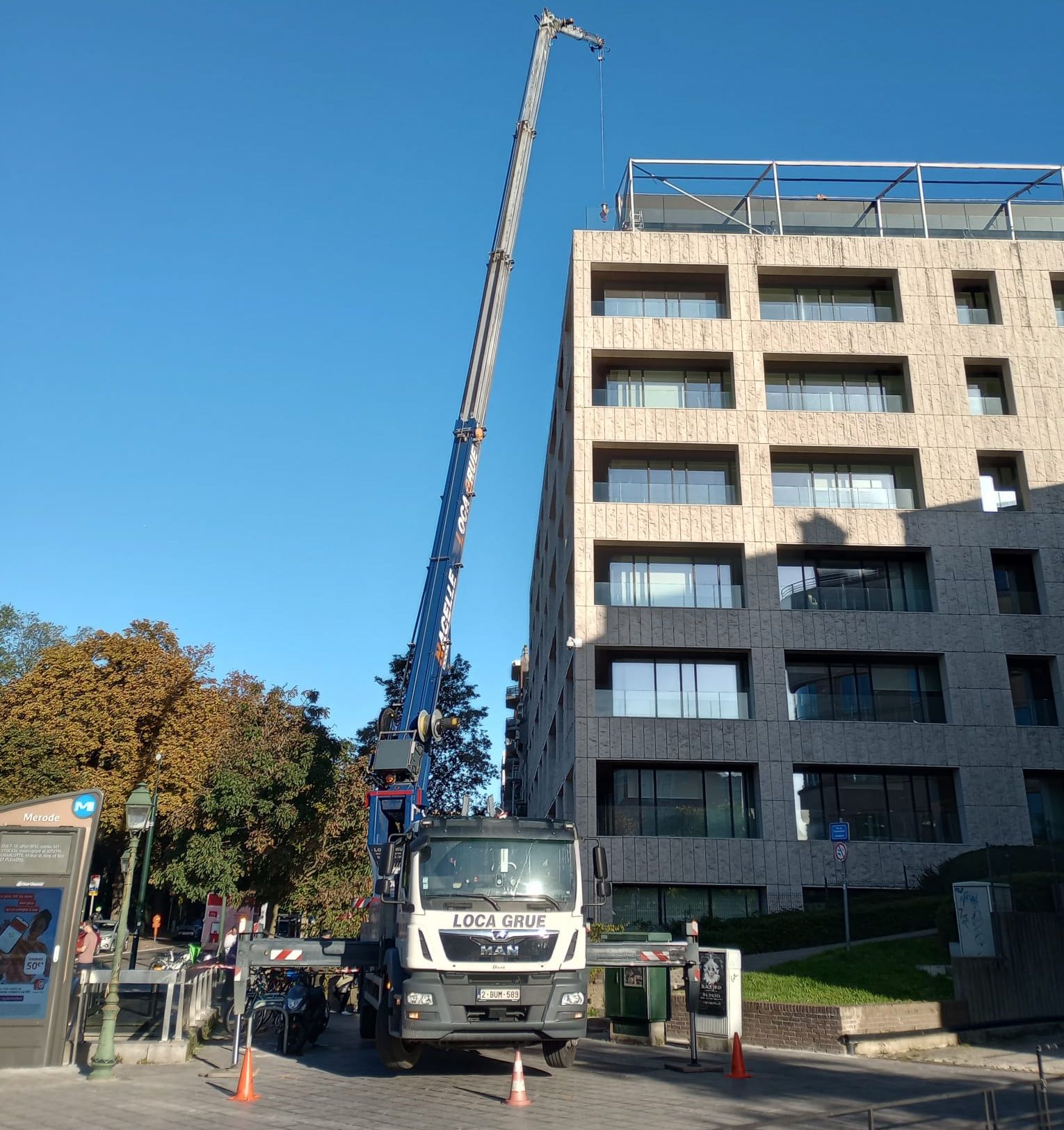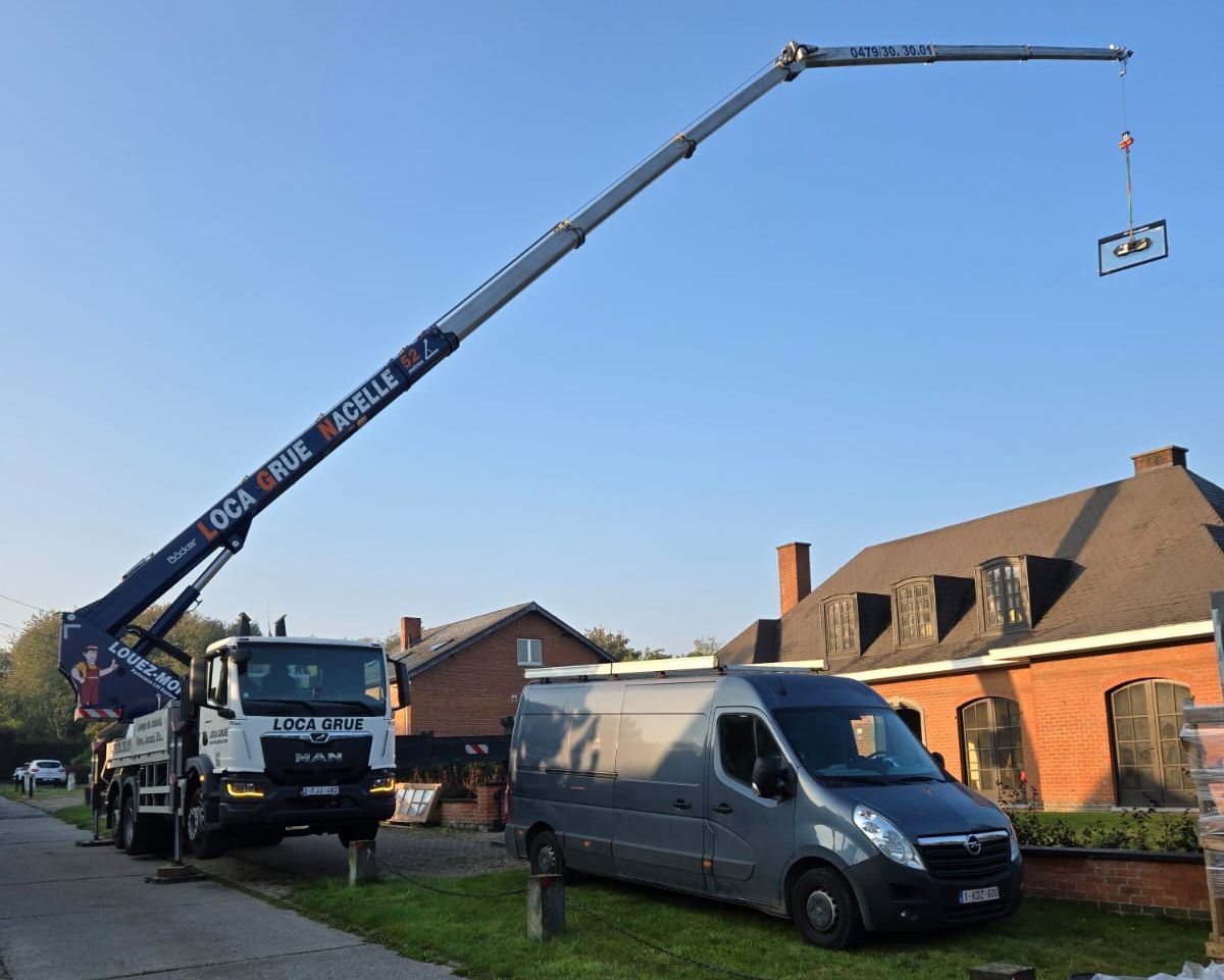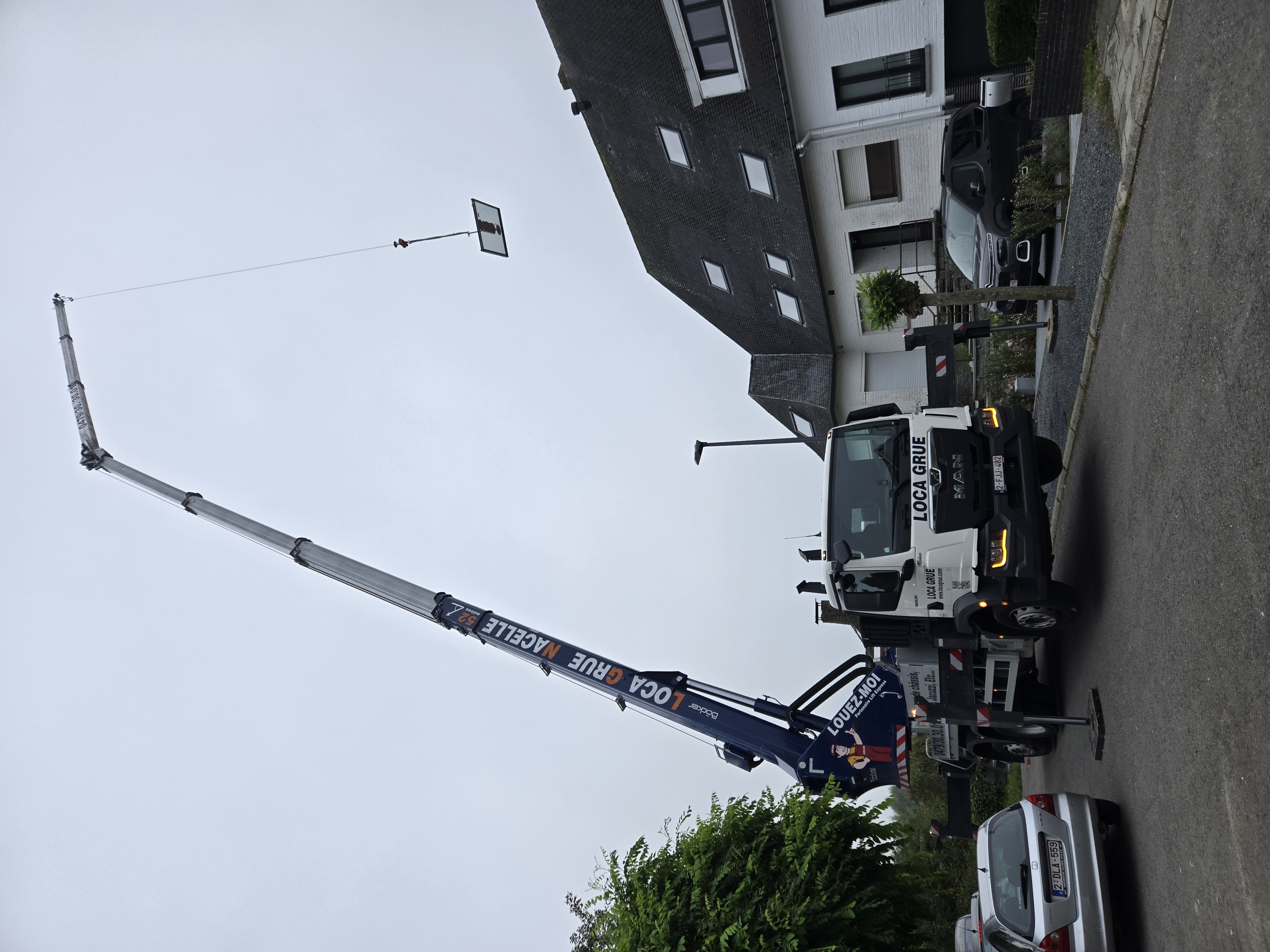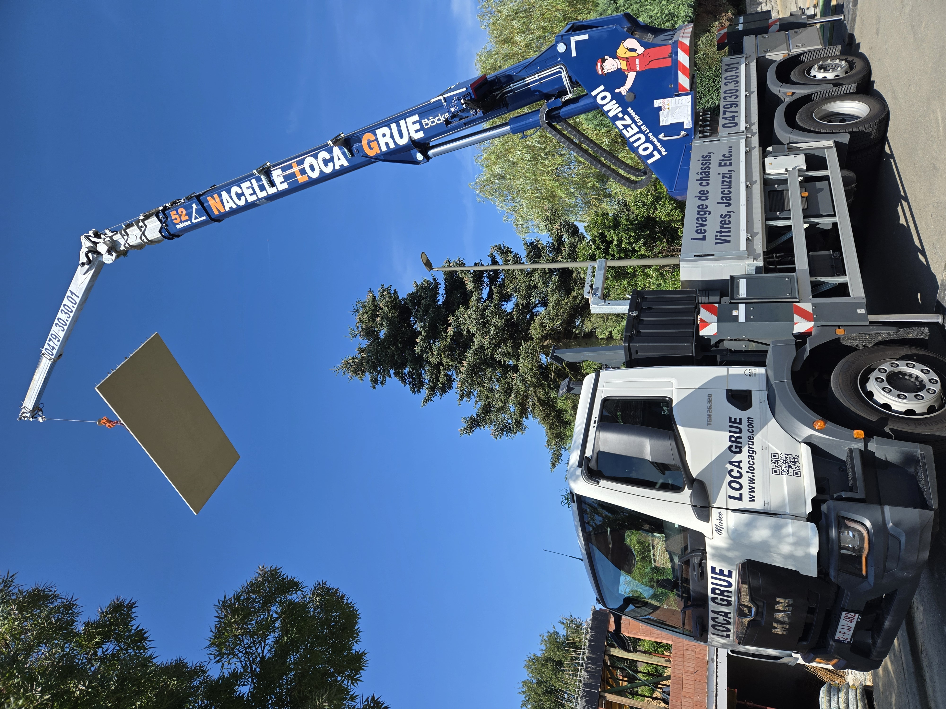 Les grues sur camion Loca Grue sont adaptées aux chantiers de construction, aux poses de panneaux solaires, aux travaux d’élagage, etc. Équipées de nacelles, elles assurent la sécurité de vos techniciens pour des travaux en hauteur.